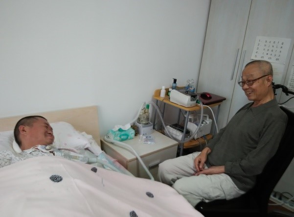 范老師患病后在病友的鼓勵(lì)中堅(jiān)定抗凍信念,深受病友尊重。他是中國(guó)攝影家協(xié)會(huì)會(huì)員,“見(jiàn)證漸凍生命力”攝影展的主要作者之一,先后參加漸凍人(ALS)聯(lián)盟春節(jié)聯(lián)歡會(huì)、“情聚蘇寧.為漸凍人尋找火種”等社會(huì)活動(dòng),精心制作自己的攝影作品鼓勵(lì)中心和病友。在最后一次隨訪中,隨訪人員強(qiáng)烈建議為患者施行鼻飼或胃造瘺,在家屬的猶豫中范老師猝然離世,老伴受不了打擊被送進(jìn)醫(yī)院急救,子女望著為父親配備的各種高檔護(hù)理器械不知所措。這是我們最不愿意見(jiàn)到的因護(hù)理知識(shí)缺失導(dǎo)致的無(wú)法挽回的人間悲劇。