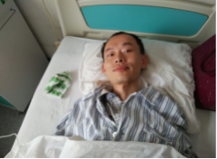 我見到石頭的時候,他剛做完胃造廔手術從手術室回到病房,見了我就笑,并毫不掩飾地訴說“傷口疼”,親近感油然而生。石頭看起來比實際年齡要小很多,瘦弱的身軀在病床上顯得更加單薄。