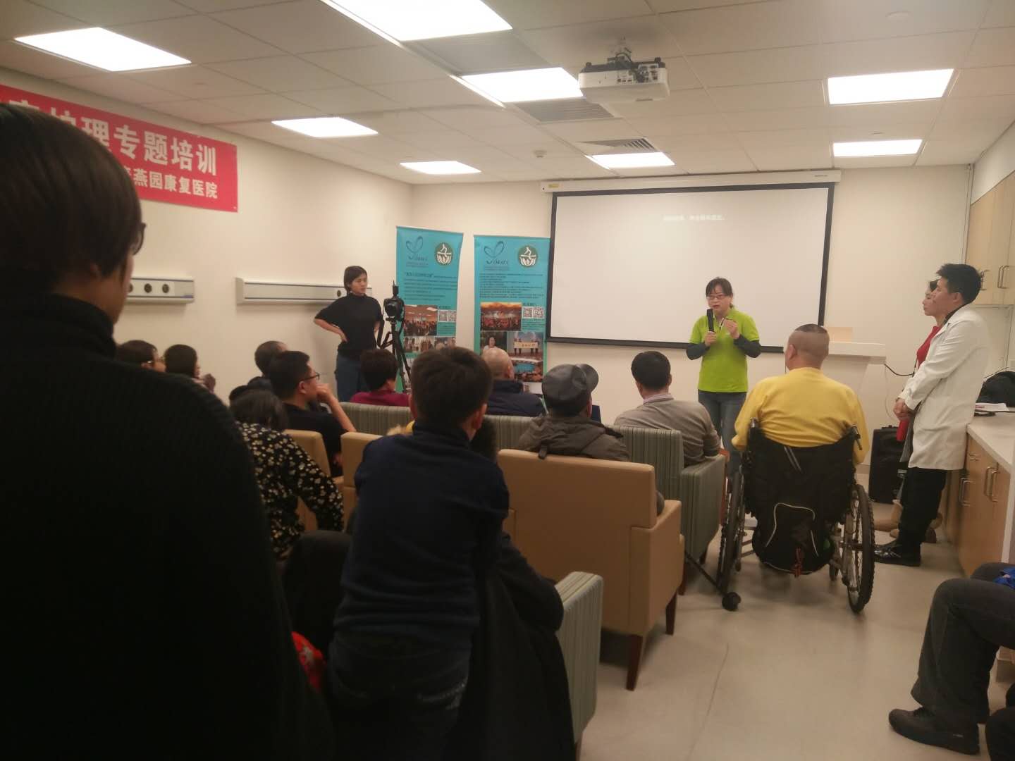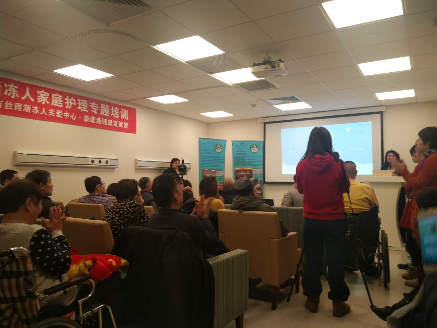 寒冷并沒有消弱大家學(xué)習(xí)的熱情,培訓(xùn)會場可謂站無虛席。中心理事長王金環(huán)為大家進行了“長假期間護理與急救知識”的專題培訓(xùn),就春節(jié)假期中可能遇到的問題及應(yīng)對措施進行了詳細的講解。她還與大家一起回顧:漸凍人之家2017年4月15日在泰康燕園康復(fù)醫(yī)院正式對全國的漸凍人朋友們開放,已為病友們提供多次各類免費的評估、培訓(xùn),接待來訪中外嘉賓、媒體朋友,并在“2017年首都慈善開放日”中對社會開放。漸凍人之家,不僅為漸凍人康復(fù)治療開辟了綠色通道,也成為漸凍人發(fā)聲的窗口和陣地。