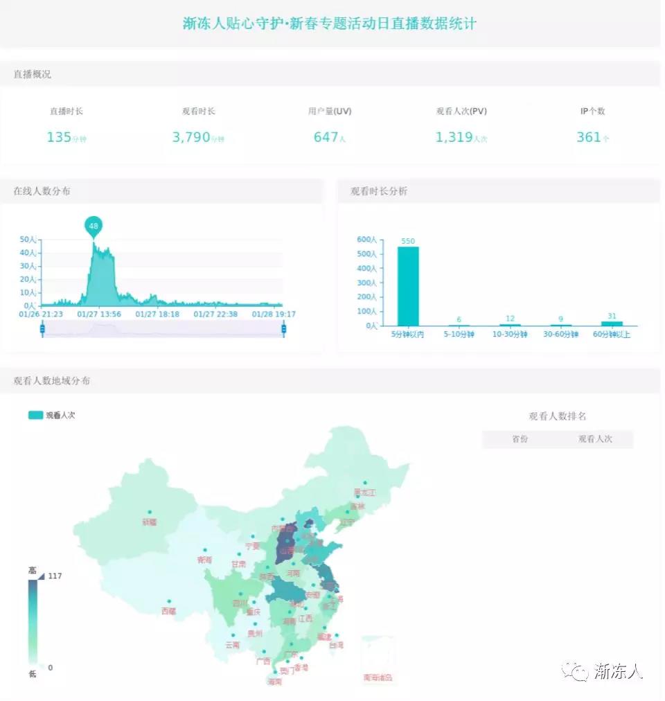 本次培訓(xùn)在線直播135分鐘,有效觀看人數(shù)361人,主要集中在上海、北京、山西,感謝愛心企業(yè)提供直播平臺,新媒體的傳播方式日后也會被我中心開展的培訓(xùn)活動借鑒、運用。(點擊最下方鏈接,觀看直播視頻)
