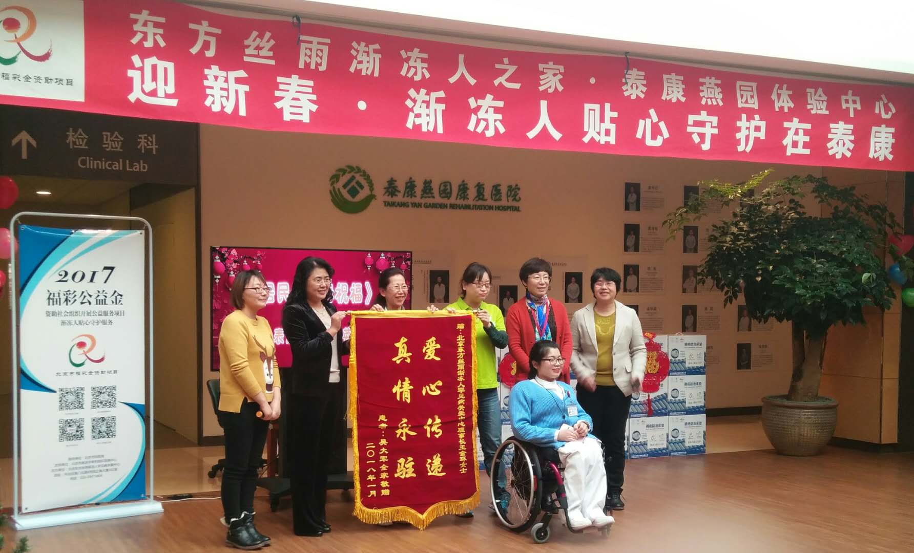 東方絲雨漸凍人之家?泰康燕園康復(fù)體驗中心,作為漸凍人的“家”,1月27日迎來了2018年第一批回“家”過年的病友及家人們。為了給家人們過一個平安、溫暖的春節(jié),在北京市民政局福彩公益金的支持下,中心特別舉辦了“漸凍人貼心守護?新春專題活動日”,迎漸凍人回家,溫暖過年。