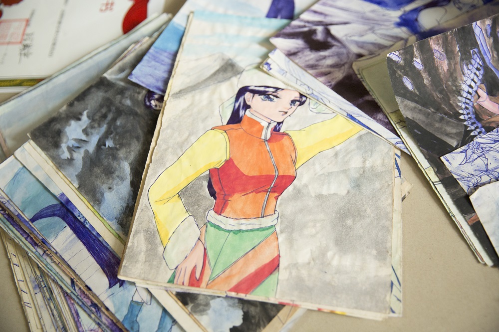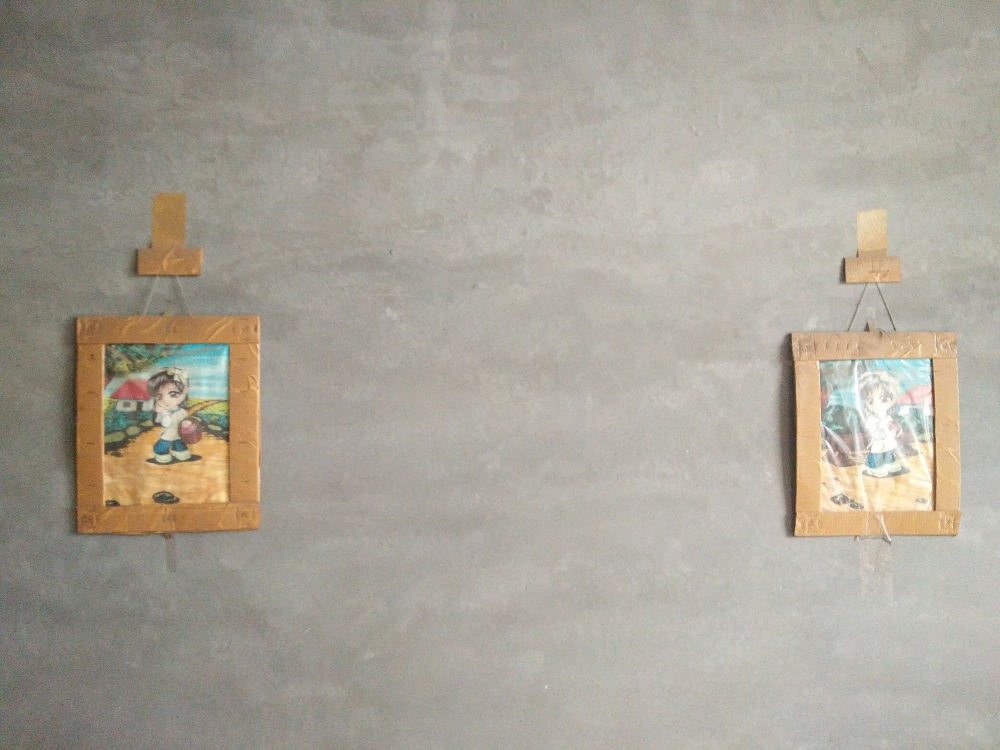 環(huán)顧四周,屋內一貧如洗,一盞孤燈(準確的說是只有一個燈泡)高高懸掛在屋頂上,兩幅月兒的漫畫作品,用牛皮紙圍了一圈,算是自制的畫框了,孤零零地掛在墻上,無聲地訴說著房間內主人的故事。