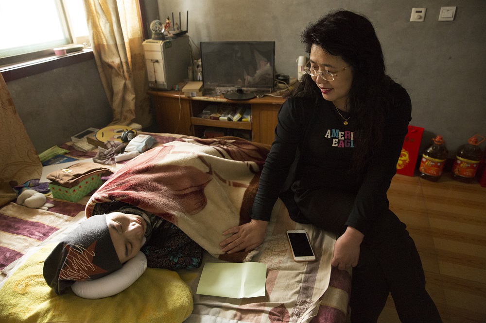 眼前的月兒因久病臥床,身體已經(jīng)萎縮的像個大嬰兒,一雙手無力、蒼白、脆弱,讓人憐惜,似乎一個不留神隨時都會折斷。就是這樣一雙手,人們很難想象,它的筆下曾繪出了許多栩栩如生的作品,感染鼓舞著病友: