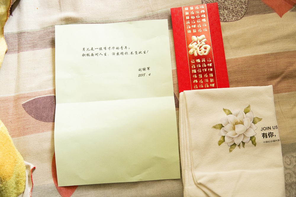 為了此次探望,我們的團隊也是籌備了許久,像這樣跨省、遠途自駕走訪病友還是頭一次。彤哥(東方絲雨創(chuàng)始人劉繼軍)給月兒寫了鼓勵信,還特別準備了見面紅包;工作人員為月兒購買了輪椅、血壓計、墊圈、食物,以及各界愛心人士捐贈的物品。