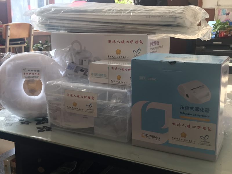 呼吸護(hù)理包中有電動吸痰器、吸痰管、霧化器、簡易呼吸器和呼吸消毒器,是剛做完氣切手術(shù)的病友吳大軍的剛需物品,當(dāng)這5件用具送到房山吳大軍家中時,一家人感激了好久。