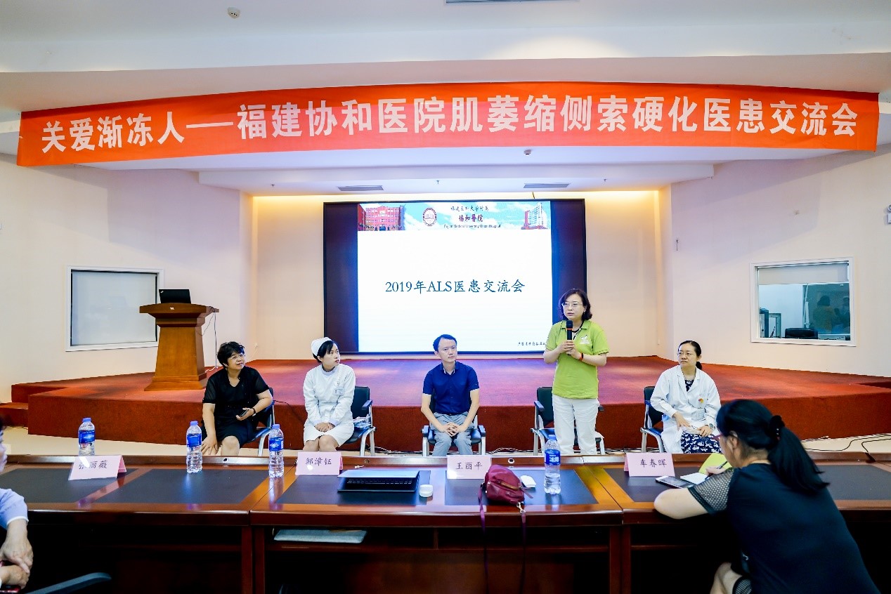 為此,7月7日上午在福建協(xié)和醫(yī)院,我中心與福建醫(yī)科大學(xué)附屬協(xié)和醫(yī)院神經(jīng)內(nèi)科、中國(guó)研究型醫(yī)院學(xué)會(huì)神經(jīng)科學(xué)專業(yè)委員會(huì)聯(lián)合舉辦“關(guān)愛漸凍人—肌萎縮側(cè)索硬化醫(yī)患交流會(huì)”,并掛牌成立了國(guó)內(nèi)首家關(guān)愛漸凍人公益基地,我中心副主任林莉?yàn)榛芈涑墒谂?,來自全省各地?0多位ALS患者和家屬相聚協(xié)和參加交流會(huì)。