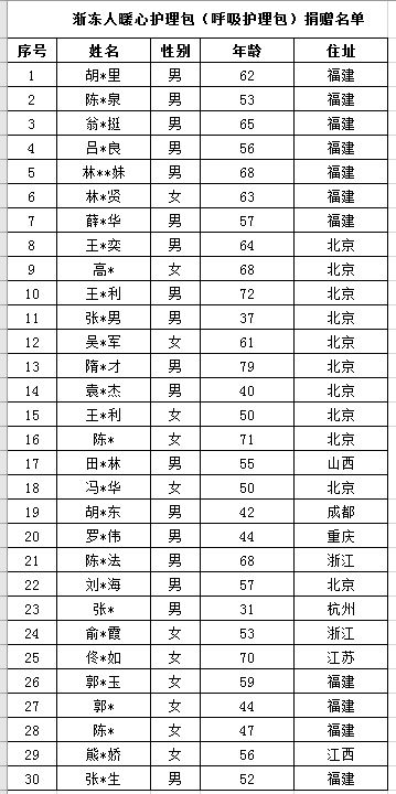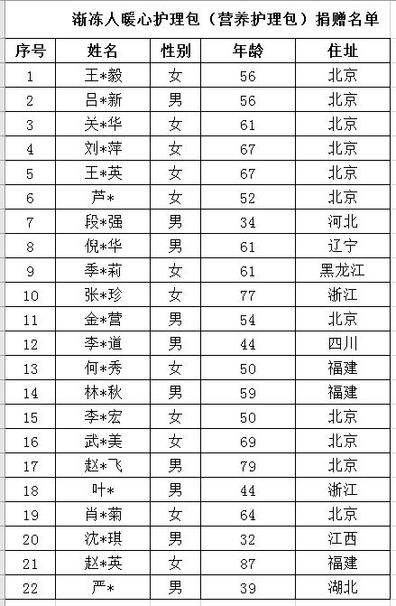 漸凍人暖心護(hù)理包受捐者名單(截止2019年9月30日)