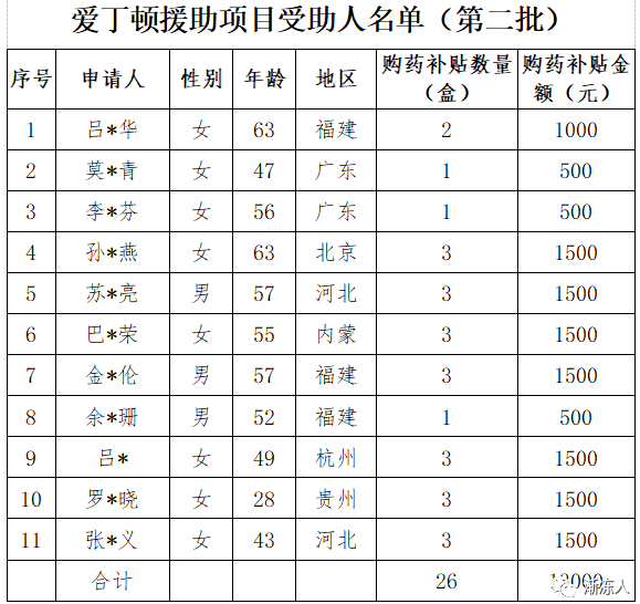 2020年第一季度,又有11位漸凍病友獲得“愛丁頓援助項目”資助,這是該項目的第二批受助者(詳細名單見下)。項目自2019年11月27日開始執(zhí)行,2020年1月2日第一批29位獲助患者名單公布。