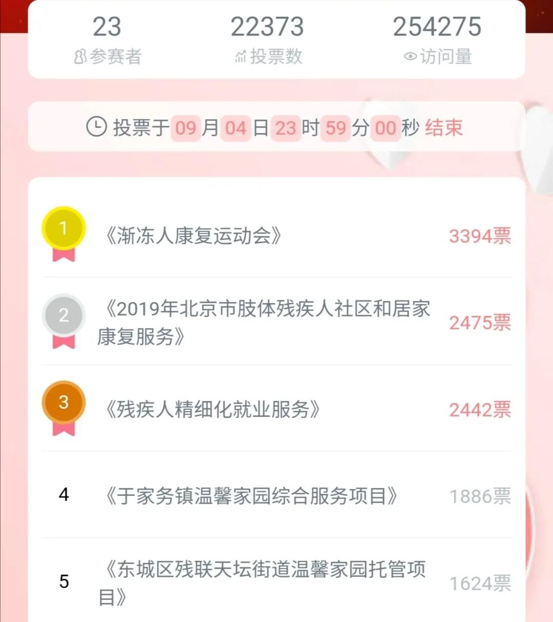 為促進(jìn)殘疾人基本公共服務(wù)體系建設(shè),提升助殘服務(wù)的專業(yè)化、社會(huì)化水平,打造助殘服務(wù)公益品牌,形成良好的引領(lǐng)示范效果,北京市殘聯(lián)開展了2019年各級殘聯(lián)購買殘疾人服務(wù)優(yōu)秀項(xiàng)目征集遴選工作。 北京東方絲雨漸凍人罕見病關(guān)愛中心《漸凍人康復(fù)運(yùn)動(dòng)會(huì)》項(xiàng)目成功入選北京市助殘社會(huì)組織服務(wù)項(xiàng)目。經(jīng)前期項(xiàng)目征集、專家篩選評審、購買主體投票,產(chǎn)生23個(gè)優(yōu)秀項(xiàng)目。我中心“漸凍人康復(fù)運(yùn)動(dòng)會(huì)”作為23個(gè)優(yōu)秀項(xiàng)目之一,最終獲得“杰出項(xiàng)目”獎(jiǎng),并在網(wǎng)絡(luò)社會(huì)大眾投票活動(dòng)中,以第一名的好成績,獲得“最佳人氣項(xiàng)目”。