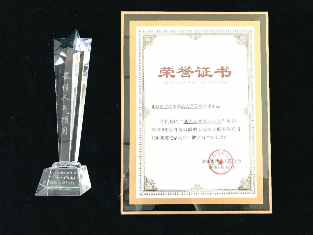 9月8日,2020年北京市助殘社會組織及優(yōu)秀殘疾人服務項目展示活動之“專家會客廳云端學經(jīng)驗”線上論壇、優(yōu)秀項目頒布儀式成功舉辦。 北京東方絲雨漸凍人罕見病關愛中心“關愛漸凍人康復運動會”項目作為入選的23個優(yōu)秀項目之一,被北京市殘疾人聯(lián)合會評為“杰出項目”,并在網(wǎng)絡評選過程中被評為“最佳人氣”項目。