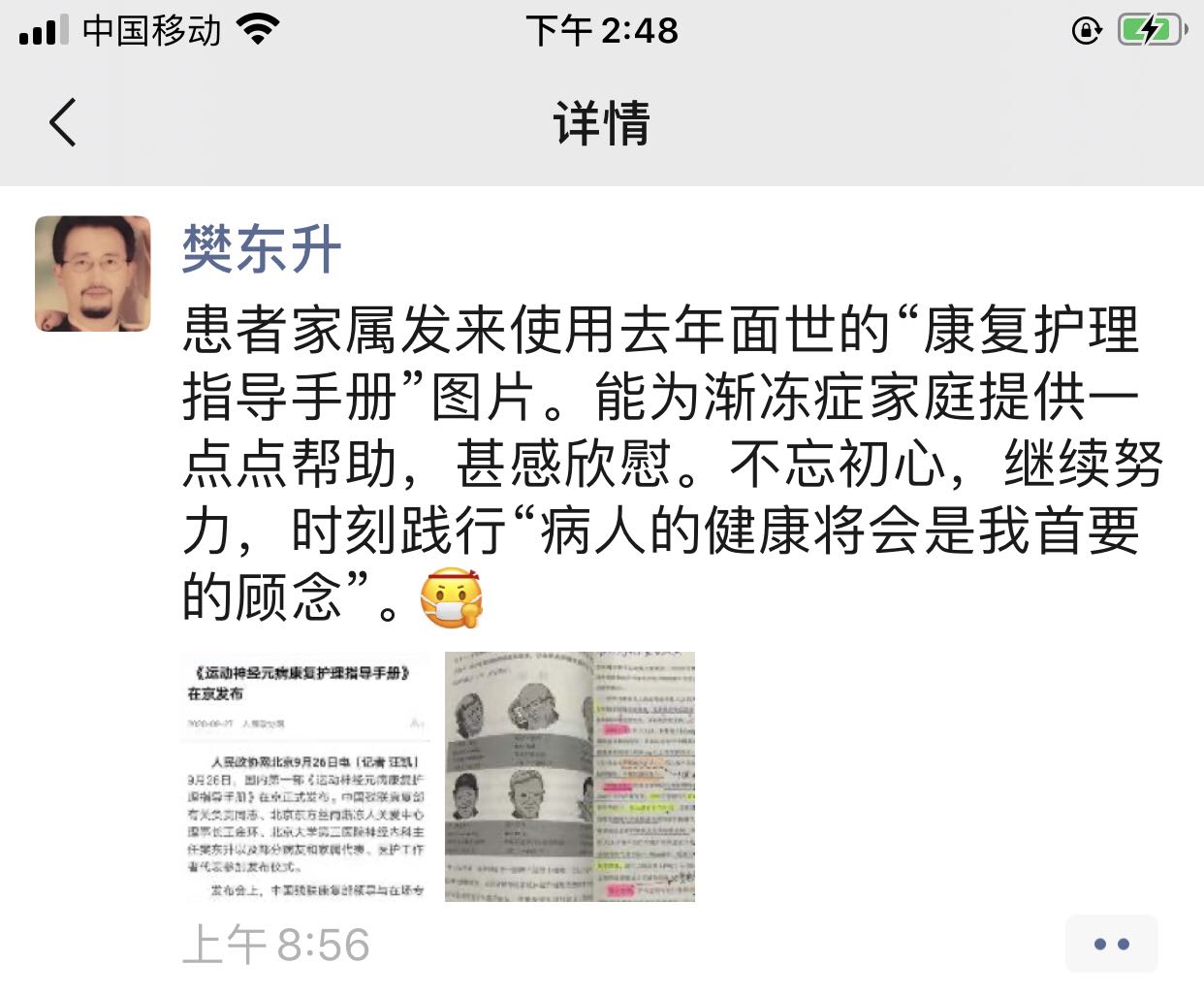 心有余悸,也很高興,書中所寫被家屬看到,挽救了一條鮮活年輕的生命。用在實處,就是對《手冊》最好的肯定。