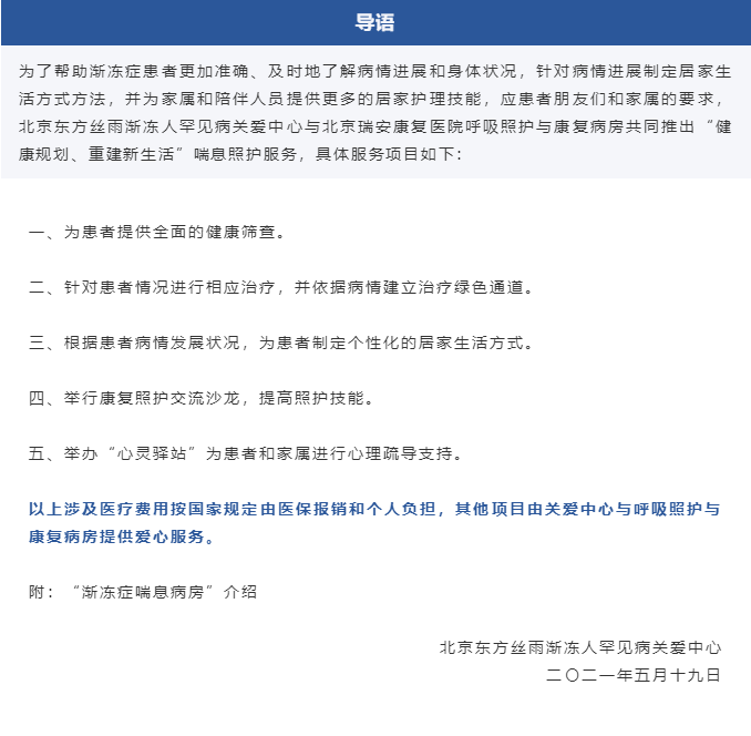 漸凍人喘息護(hù)理病房有需要的病友可向我中心咨詢。