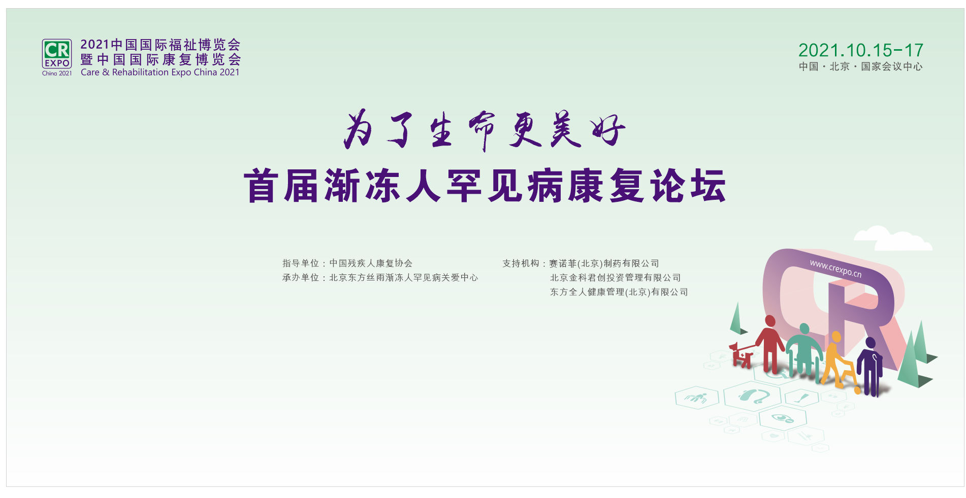 2021年10月16日,由中國(guó)殘疾人康復(fù)協(xié)會(huì)指導(dǎo),北京東方絲雨漸凍人罕見病關(guān)愛中心承辦的“為了生命更美好--首屆漸凍人罕見病康復(fù)論壇”,在第十四屆中國(guó)國(guó)際福祉博覽會(huì)暨中國(guó)國(guó)際康復(fù)博覽會(huì)上成功舉辦。