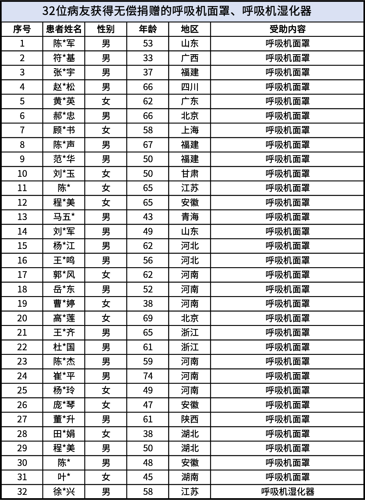 新冠疫情擋不住愛(ài)的傳遞,又有53位病友獲得漸凍人百萬(wàn)呼吸工程援助,在社會(huì)各界愛(ài)心的支持下,堅(jiān)定生活信心,共同迎接攻克頑疾的黎明。53位受助病友名單如下: