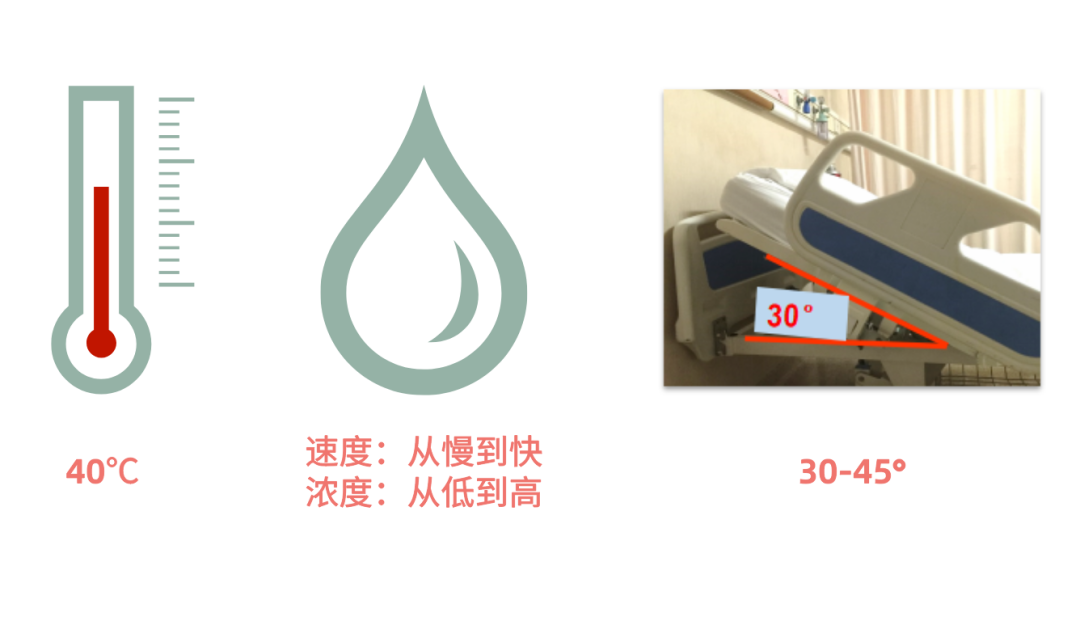 在鼻飼的整個過程中,照護者需要注意以下四點(簡稱"四度"),具體內(nèi)容如下: