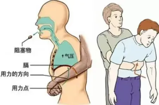 3.用你的身體重量,快速沖擊壓迫患者的腹部,重復(fù)之直至異物排出
