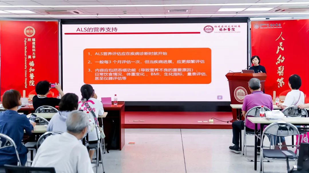本次公益課堂特邀請(qǐng)福建醫(yī)科大學(xué)附屬協(xié)和醫(yī)院神經(jīng)內(nèi)科鄒漳鈺教授、營(yíng)養(yǎng)科王亦萍教授、消化科張思寒醫(yī)生以及呼吸治療師夏鳳萍老師,分別圍繞“ALS的治療進(jìn)展”、“ALS的營(yíng)養(yǎng)支持”、“ALS的胃造瘺及護(hù)理”以及“ALS的呼吸支持” 等方面進(jìn)行詳實(shí)的講解。
