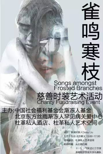 5月15日第26個(gè)全國(guó)助殘日當(dāng)天,由中國(guó)社會(huì)福利基金會(huì)漸凍人基金、北京東方絲雨漸凍人罕見(jiàn)病關(guān)愛(ài)中心(以下簡(jiǎn)稱東方絲雨)攜手杜革私人藝術(shù)空間、杜革私人酒店在杜革私人藝術(shù)空間主辦的“雀鳴寒枝,時(shí)裝慈善拍賣展”順利舉行,在這個(gè)花開(kāi)的五月,用愛(ài)共同溫暖漸凍人的心!此次活…[詳情]