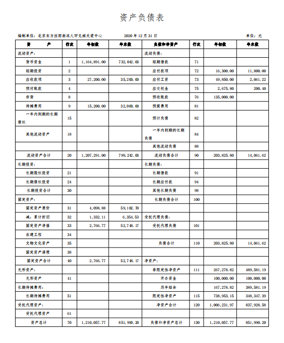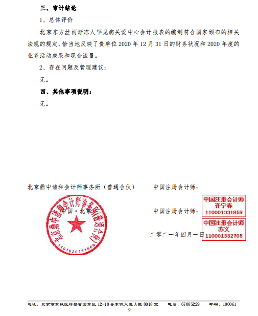 2020度東方絲雨漸凍人關(guān)愛中心審計報告